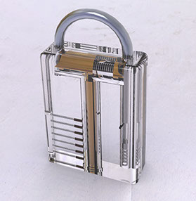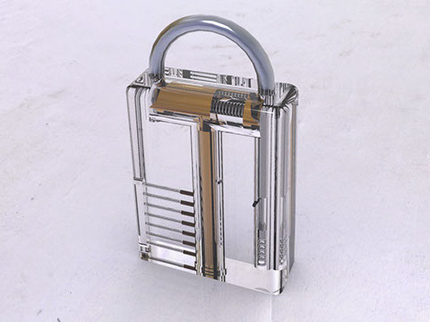 A locksmith's practice padlock was disassembled and internal components were precisely measured. A CAD model was then created in PTC's Creo CAD package from these measurements.