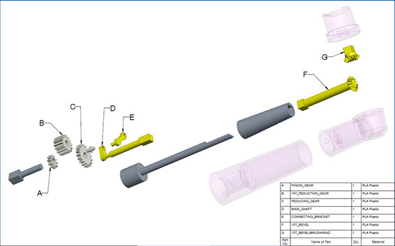 This design project aims to produce a prototype for an electric toothbrush’s powertrain mechanism. It provides a background in current market trends and existing, mass manufactured mechanisms. After evaluating this research, a 4-bar linkage and bevel gear system was selected to be designed. Using a combination of hand-written and code-based calculations, we provide a prototype solution that was very close to the required design specifications. Various computer analysis was performed on our model, constructed In the CAD software package, CREO.